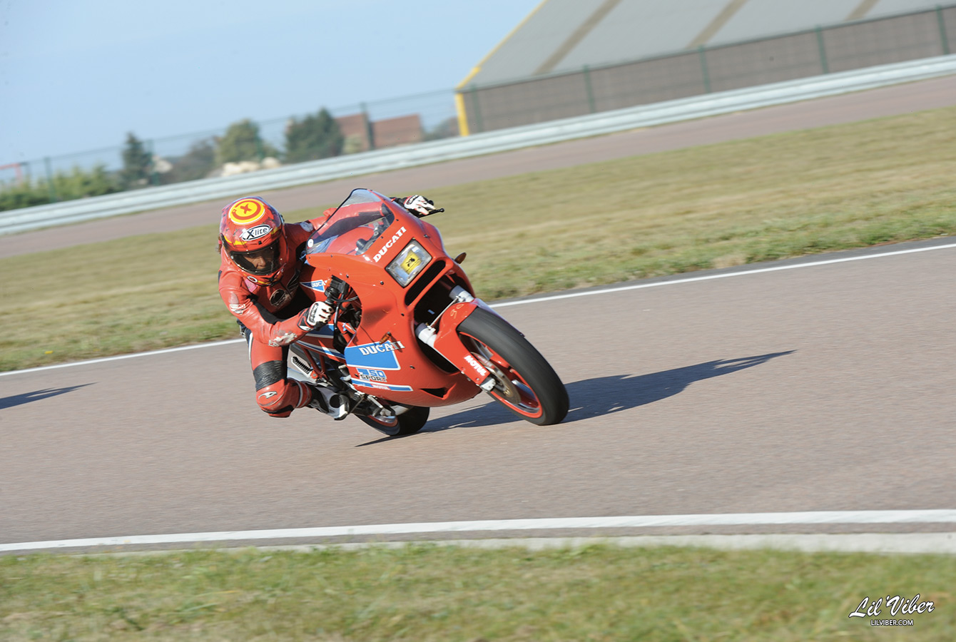 Et il n’aura pas fallut longtemps, une fois Dédé à la maison, pour aller essayer cette bécane sur circuit. Une semaine plus tard nous allions retrouver le circuit de La Ferte Gaucher pour des tests pneumatiques, l’occasion rêvée de mettre Dédé sur ce tracé bien sympathique !