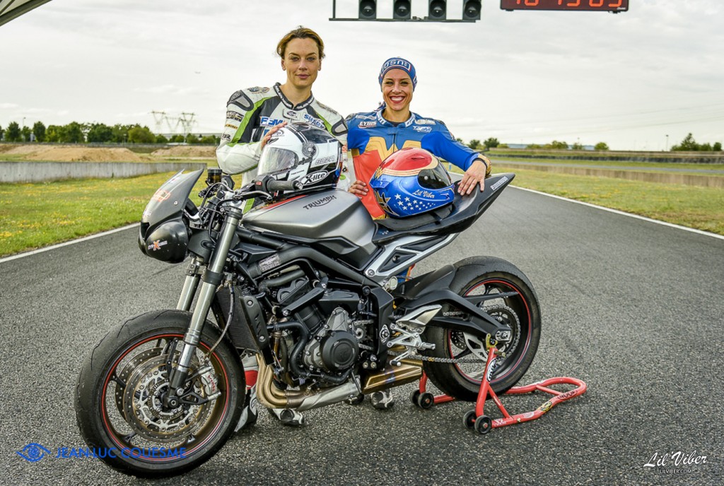 Quelques mois plus tard, on se retrouvait sur le même stage moto à la Ferté-Gaucher et là, nos hormones de compétitrices se sont direct emballées ! Tirage de bourre épique sur la piste… on a plus vraiment écouté les bons conseils de nos coachs du jour pour n’en faire qu’à notre tête ! C’est certain, on était vraiment faites pour bien s’entendre toutes les deux ;-)
