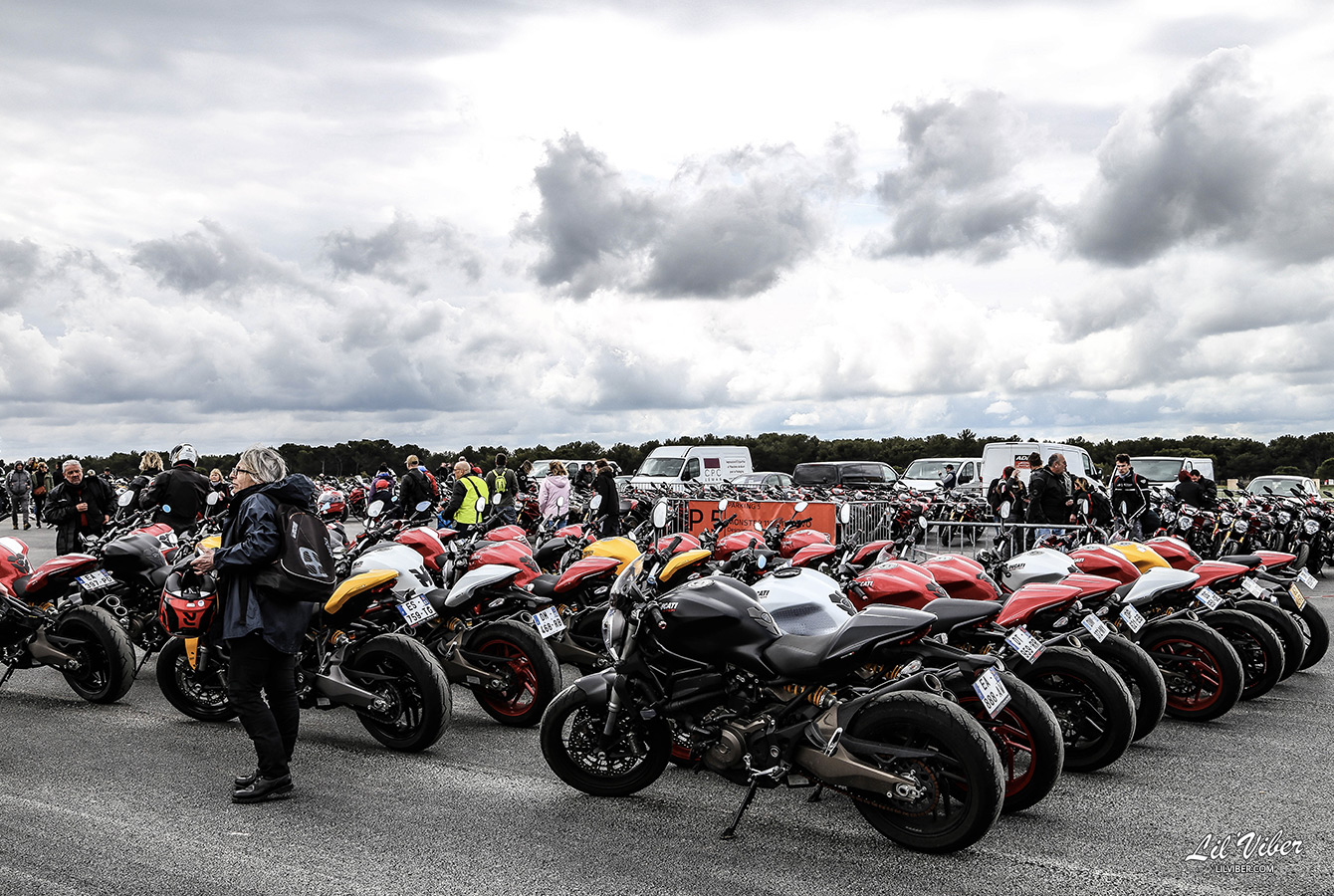 Le cadeau, le cadeau, le cadeau ! Bon ok, on a bien mangé, on a bien bu (avec modération bien sûr), il n’y avait rien à redire sur la salle des fête et l’organisation, mais il manque encore le principal : le cadeau ! Et là, je pense que toutes les invitées en ont pris plein les phares avec la surprise du chef ! Deux tours du nouveau tracé F1 du Castellet de 5,8 kms, tout juste resurfacé, ont été offerts aux Monster avec à la clé un nouveau record du monde ! Aller poser les roues de nos belles italiennes sur ce non moins magnifique tracé, ça n’arrive quand même pas tous les jours, surtout quand tu te retrouves à 517 motos sur la piste !