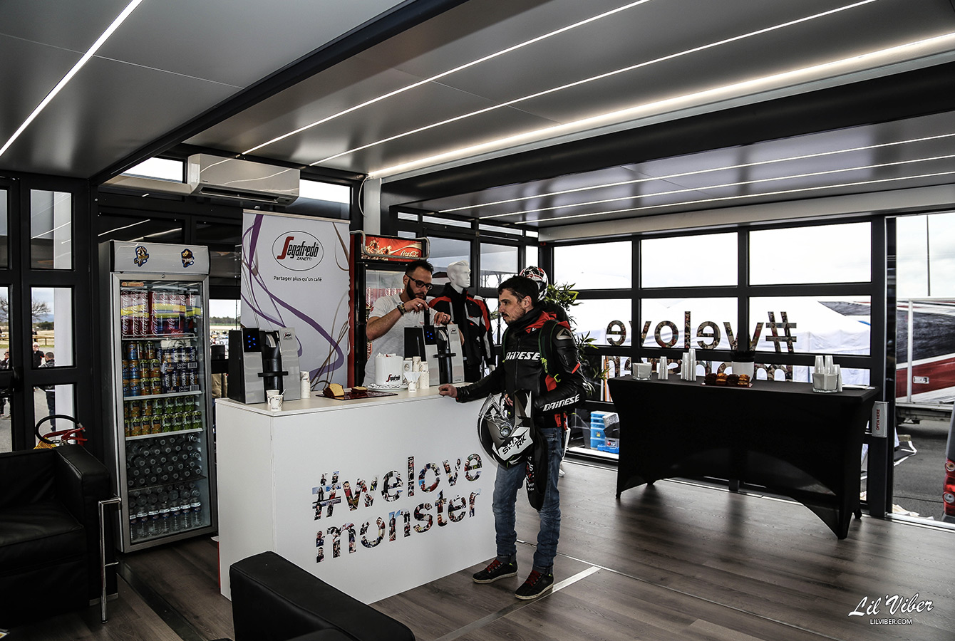Tout d’abord, le lieu des festivités. Une salle des fêtes au grand air sur le Circuit du Castellet durant la Sunday Ride Classic. Hospitality Ducati grand luxe, parking privé et tapis rouge pour l’occasion : un « Festival de (bé)Cannes » pour accueillir toutes les stars de cette journée.