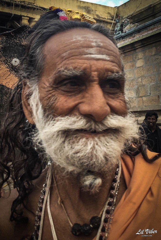 Avant d’arriver à notre hôtel dans un village qui ressemble plus à une ville fantôme qu’à un décors de film de Bollywood, nous avons fait escale à Thanjavur pour visiter l’exceptionnel temple Brihadeshwara. Encore un temple me direz-vous ? Non ! Car celui-là, en plus d’être inscrit au patrimoine mondial de l’UNESCO, est aussi caractérisé par ses vastes couloirs, ses grands halls, ses cours ombragées et sa tour d’arsenal. Top ! Notre petite marche pédestre « pieds nus » quotidienne ! Et puis on y aura croisé le fan club de « Lili », toutes vêtues de rouge, le sosie de Gandhi, encore un Ganesh qui a bu trop de bière et un bébé qui a scotché sur les nibards de Loulou !