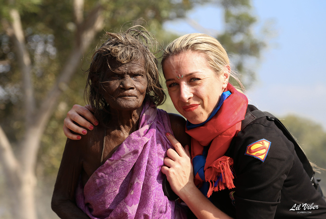 Mais c’est surtout sur le trajet qui allait nous mener à notre hôtel, que nous avons fait d’incroyables rencontres au hasard de la route. Tout comme cette femme de 114 ans (selon les dires des villageois… ) pas plus haute que 3 pommes et qui malgré son grand âge continuait à peler les noix de cajou grillées toute la journée. Lovée dans son étole violine, je n’oublierai jamais ce regard paradoxalement si jeune qui a percé mon objectif. Ou encore, cette fillette espiègle au caractère bien trempé qui s’est accaparée les crayons que nous avions distribué à une tripotée de jeunes indiens.