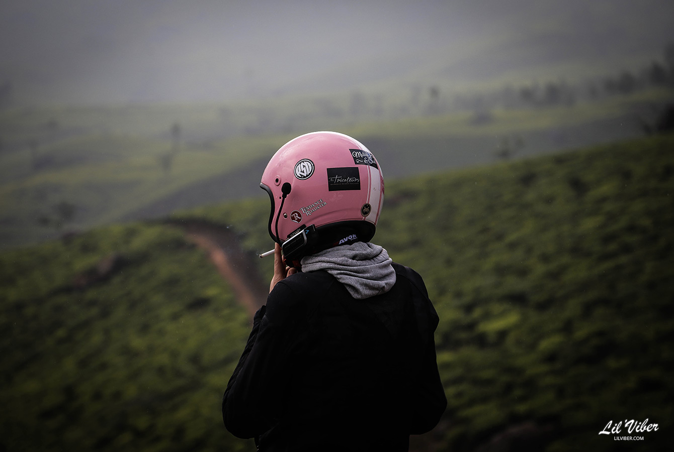 Parties de Munnar en direction de Thekkady, un village en altitude, nous pensions admirer cocotiers, forêts et plantations de thé sous un soleil radieux. Mais le temps a viré en eau de boudin et c’est sous la flotte, que dis-je le déluge, avec option « brouillard à couper au couteau » que nous avons dû faire plus de 100 kms. Et vu les les routes en Inde, je peux vous dire que nul besoin de bouffer crû ou de boire de l’eau du Gange pour laisser des traces au fond de la culotte !