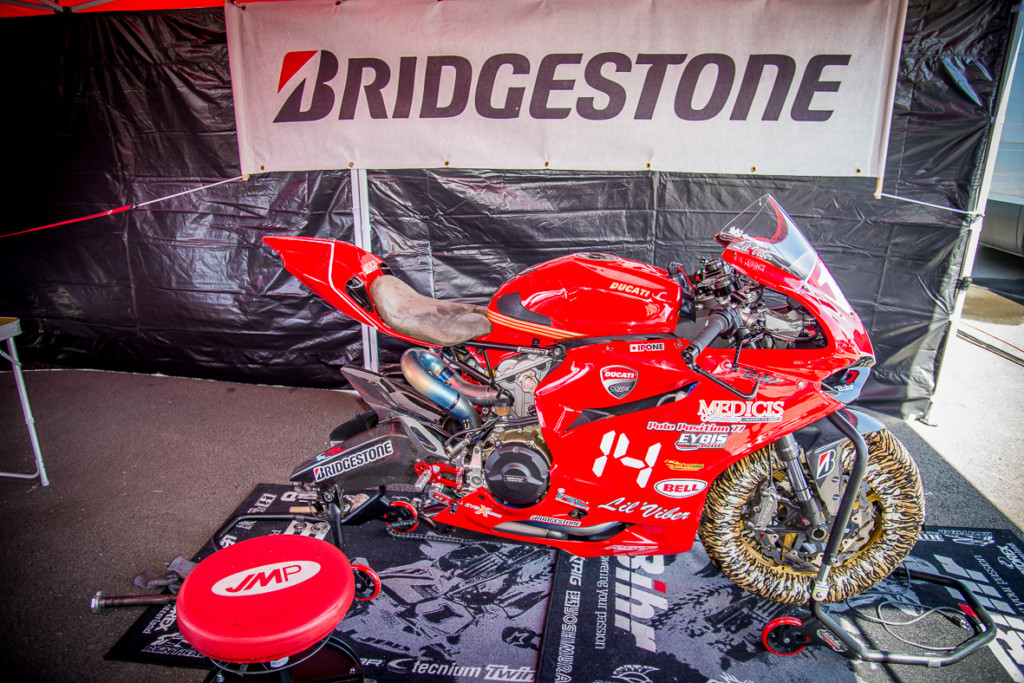 Cerise sur le gâteau, Madame Panini, que l’on ne veut plus vexer, a droit à un traitement de faveur en allant squatter le box du YART. Elle bénéficie ainsi de toute l’expertise Bridgestone de mon ami Peter. Le moral est revenu et la pression retombée… les chronos tombent aussi petit à petit, même si je n’arrive toujours pas à faire descendre « mon trouillomêtre » en rentrant dans la Dunlop. Frustrée d’être tout juste en 1,50, je rentre tout de même contente d’avoir tenté de nouvelles choses sur ma moto, de nouvelles trajectoires, dont une qui m’a valu un gros moment de solitude au fond de l’échappatoire du virage de la Chapelle, oups ! Demain sera un autre jour : celui des qualifications…