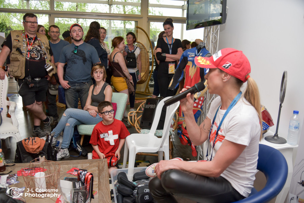 Remise de mes émotions et de ces batailles sur la piste, je suis allée passer un vrai moment d’échange et de partage avec de nombreux(ses) passionné(e)s à l’espace Lady Bike. Merci encore à tous les adorables messages de soutien que j’y ai reçu. Merci à mes partenaires d’avoir joué le jeu en me permettant de venir les bras chargés de nombreux cadeaux. Merci à Audrey de Test Your Fun / IRC Components d’être venue m’accompagner sur cette première compétition de l’année. Merci à toutes les copines et les copains d’être venus partager ce moment à mes côtés.